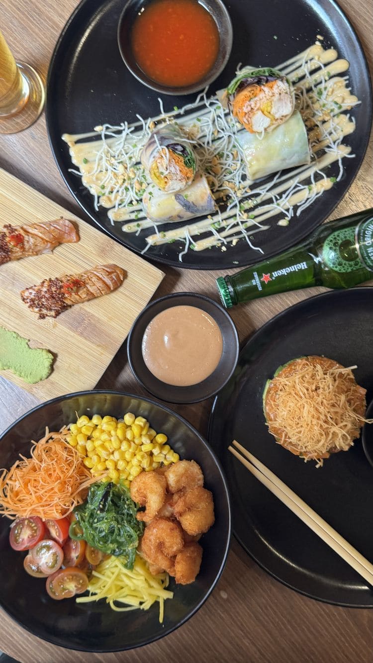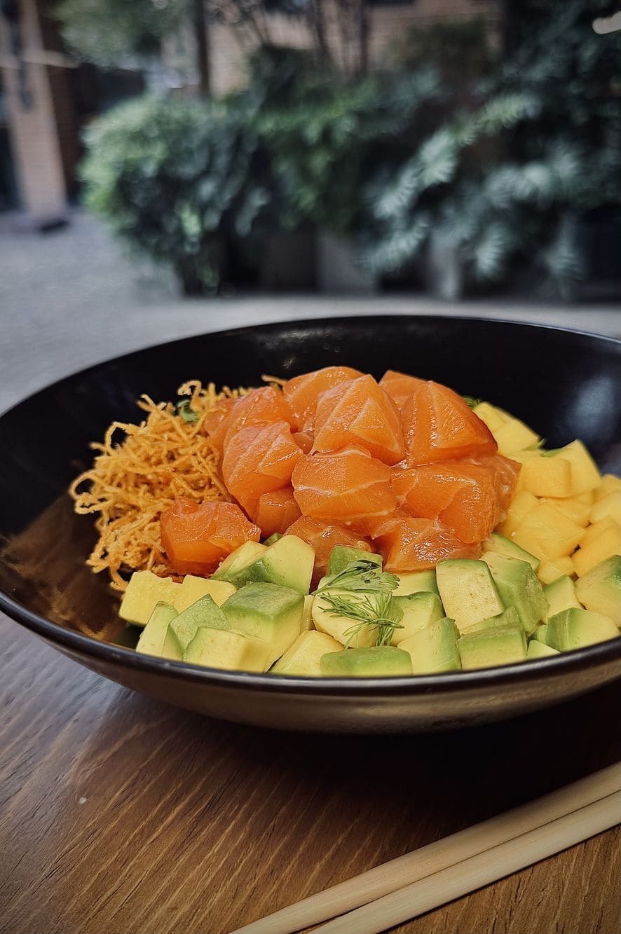 - Mahalo poke: Salmon, zanahoria crocante, aguacate, mango y salsa siracha en base de arroz.